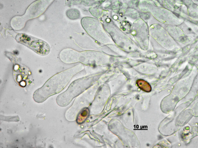 - Sporen glatt, 10.0-15.3 x 6.0-8.5 µm, av. 12.1 x 7.0 µm