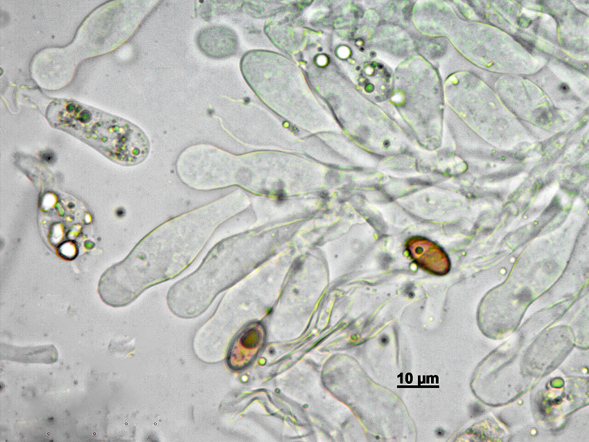 - Cheilozystiden (sub)zylindrisch bis (sub)clavat, oft subkopfig, 37-64 x 10-18 µm, av. 50 x 13 µm